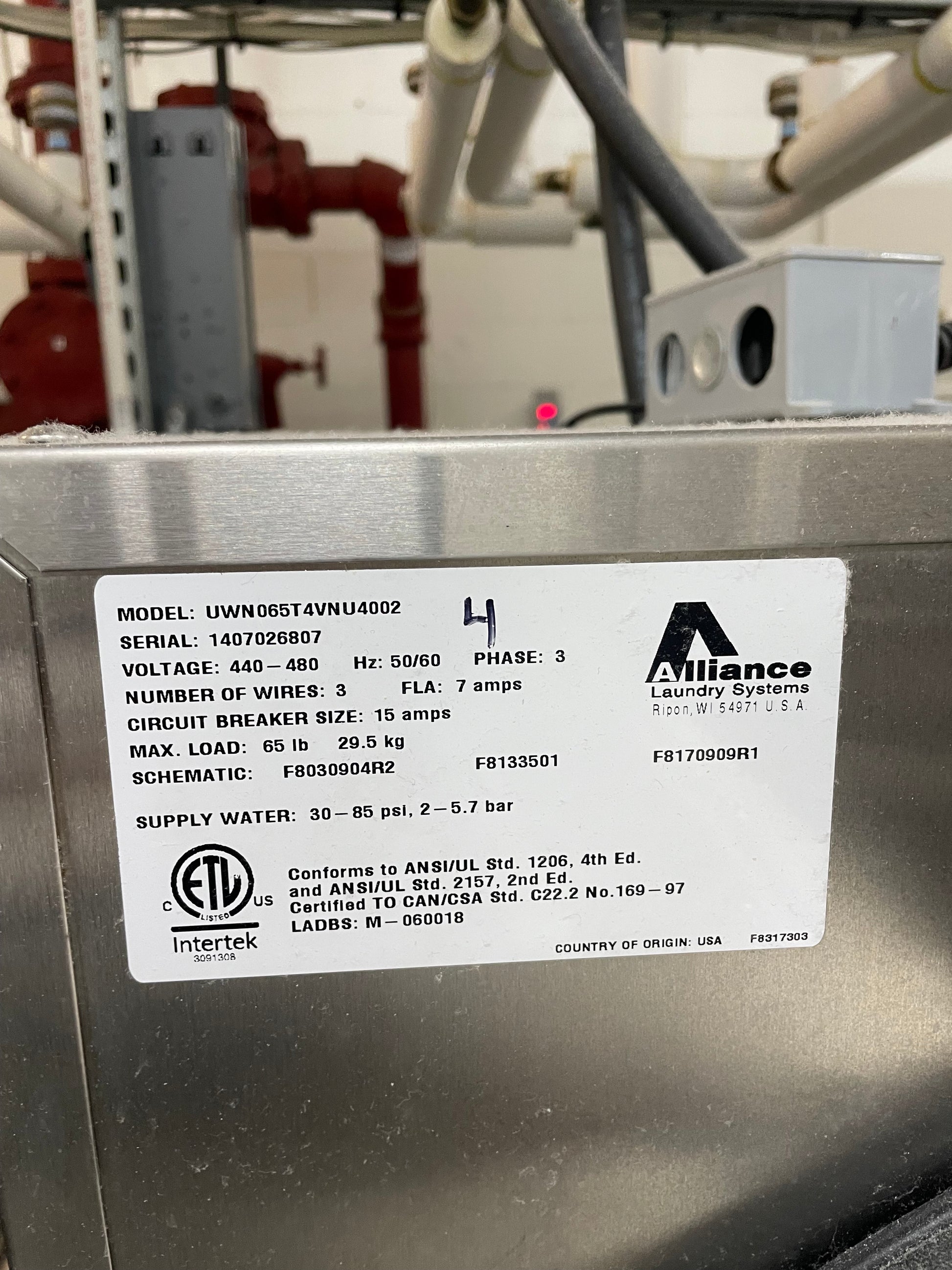 Unimac Washer 65lb UWN065T4VNU001 - 2014